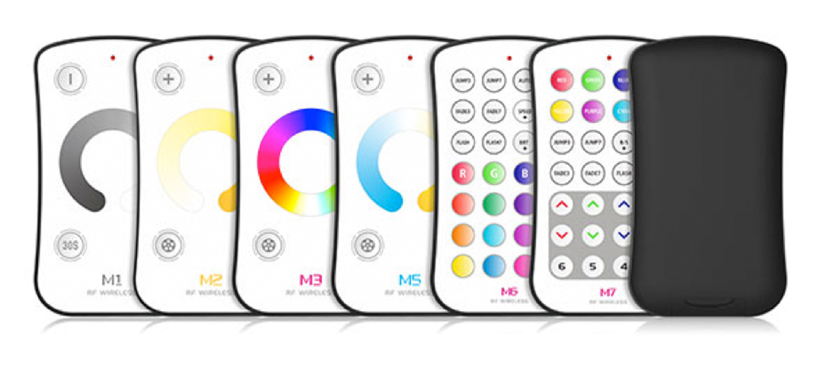 Unsere eleganten Fernbedienungen, einsetzbar je nach Art für die verschiedensten Beleuchtungsprojekte, sind durch die mitgelieferten Controller eine hervorragende Lösungfür die Steuerung Ihres Lichtsystems. Die Funkverbindung zwischen Fernbedienung und Controller erreicht eine Weite von bis zu 40 Metern. Mehrere Controller können von derselben Fernbedienung gesteuert werden.
