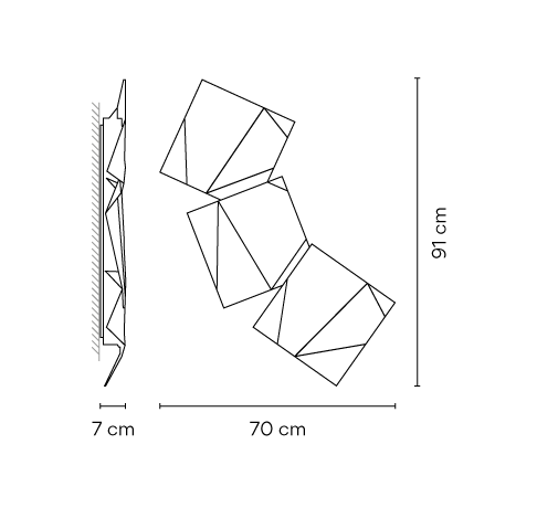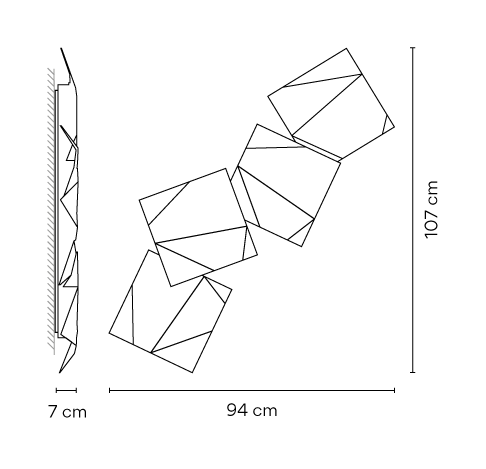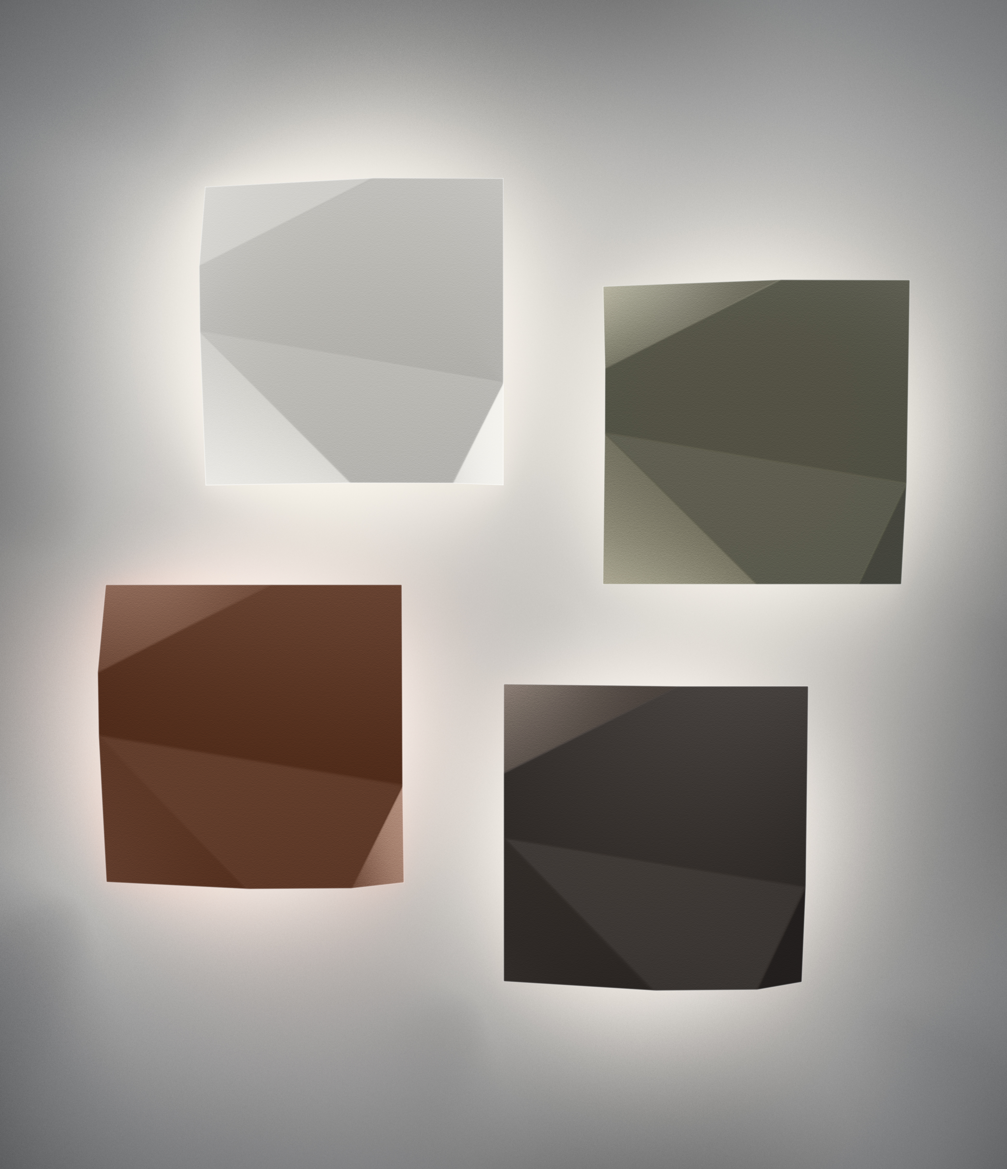 Die Kollektion der Wandleuchte Origami nutzt LEDs als dimmbare Lichtquelle, benötigt lediglich einen einzigen elektrischen Anschlusspunkt und wird auf der Oberfläche (als Aufbauleuchte) installiert.