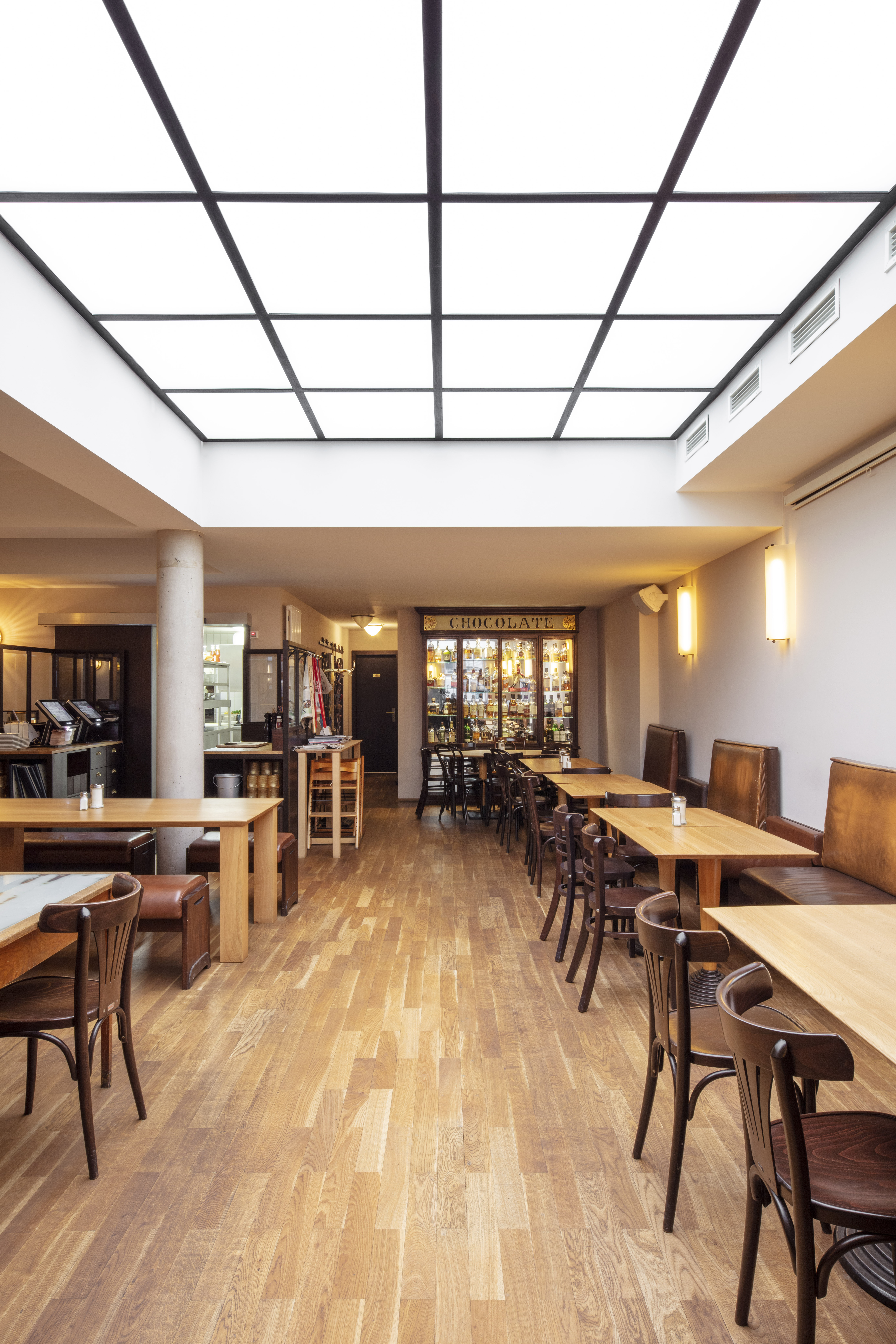 Im Café Puk sollte der Eindruck des früher vorhandenen Lichthofs wieder hergestellt werden.