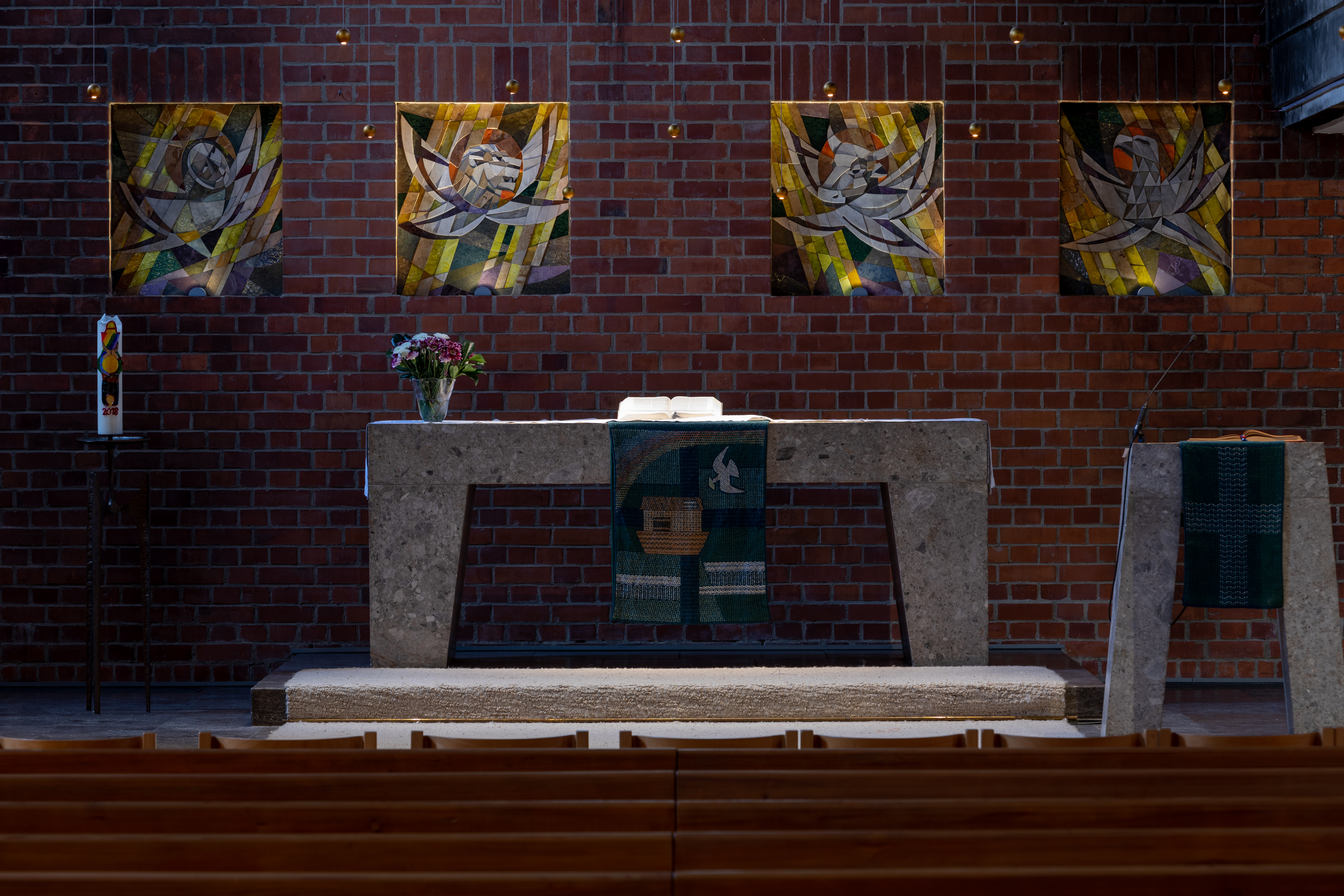 Mit den Shape Window Frame wurden die beleuchteten Evangelisten Bilder im Hintergrund des Altars zusätzlich hervorgehoben.