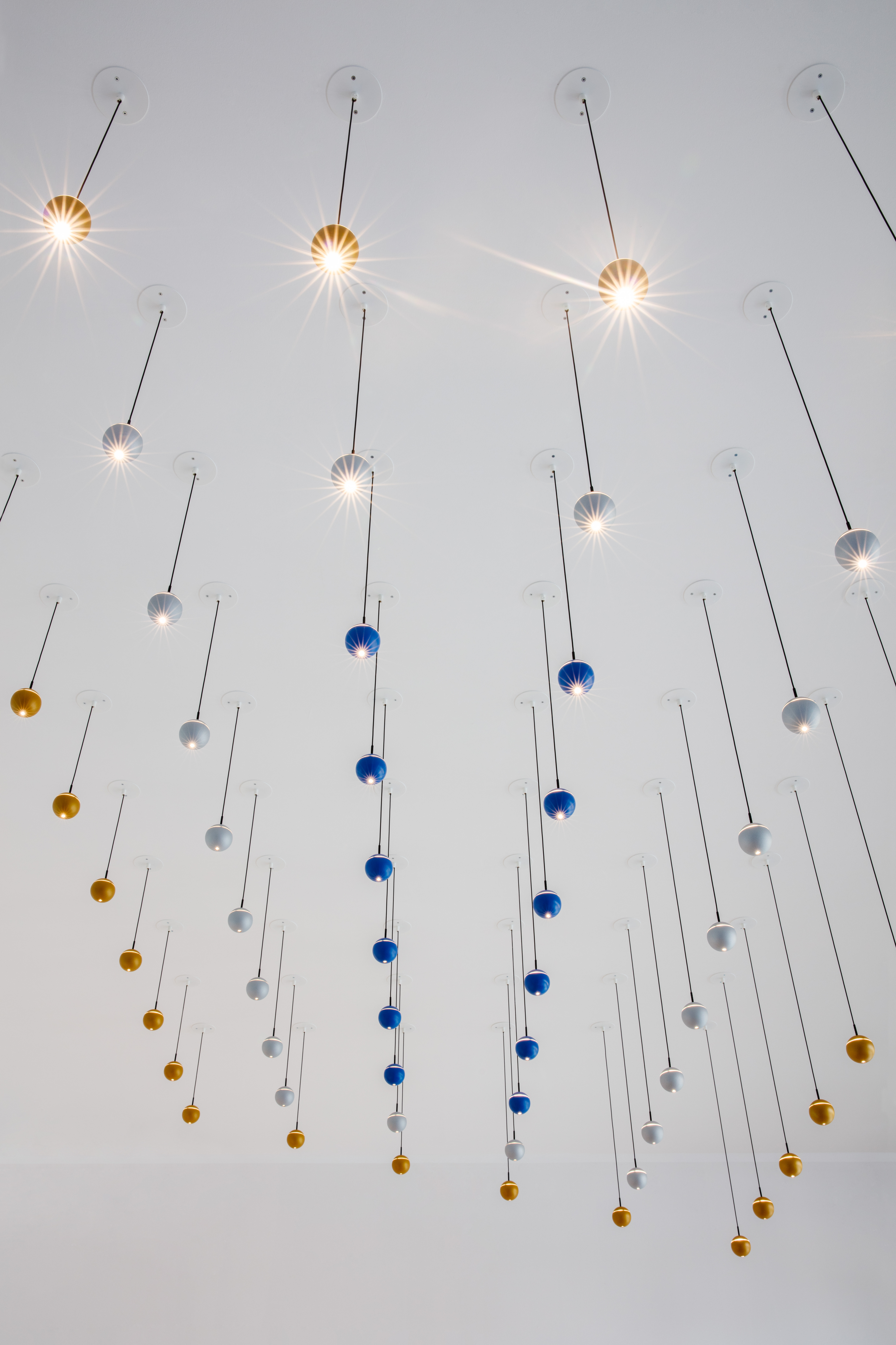 Das Foyer des Nachbargebäudes der Davies GmbH in der Leopoldstr. 254 in München wurde mit 60 Stück der „Snooker Shine“ Pendelleuchten der Firma Prolicht ausgestattet.