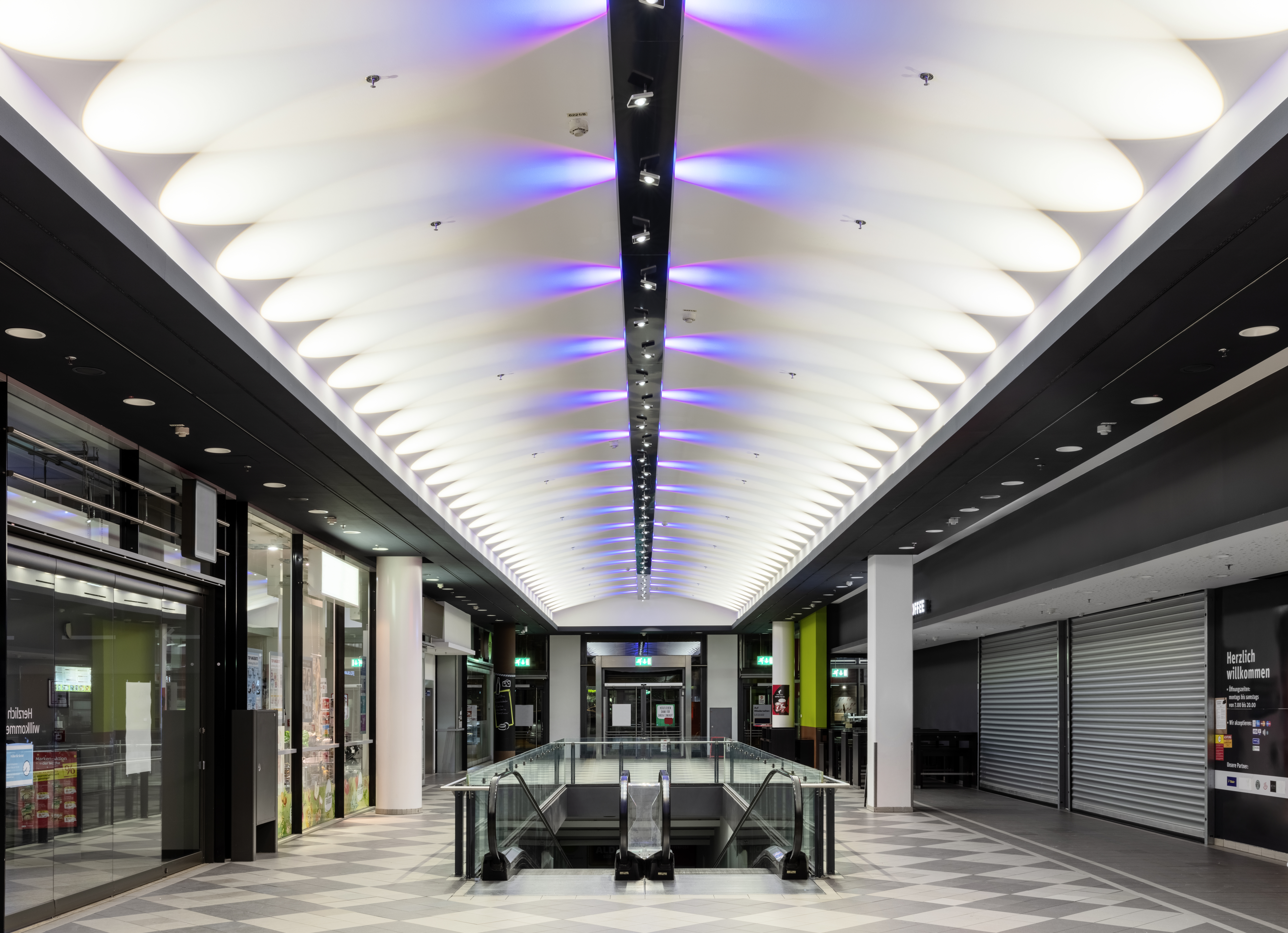 Im Auftrag der Bavaria PS GmbH haben wir den Deckenspiegel der „Neuen Hopfenpost“ in München gestaltet. Mit 170 Linsenleuchten der ONYXX LED Serie und blauen Farbfiltern von Grimmeisen Licht hat Cédric Davies die Einkaufspassage sichtbar aufgewertet.